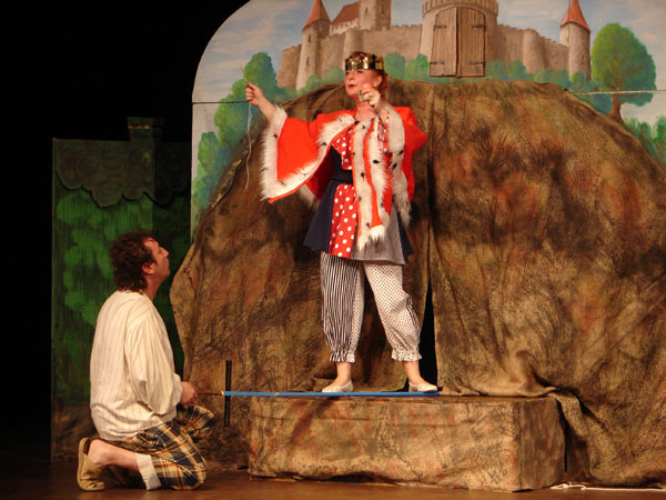Jenže – dřív, než najde ženicha pro princeznu, přijme pozvání na poslední kejklířské vystoupení paní Eulálie a jejího sluhy Mrťafy. Omámen sladkými slovíčky a oslepen falešnou přízní – učiní z Eulálie svoji ženu – královnu. Eulálie si užívá neomezené moci – vydává zákazy, rozkazy a příkazy. Strach jí nahání jen krejčí Jíra, kterého přistihne, jak cukruje s princeznou…“ to by pak přišla o vše „….a tak princeznu zavře do věže, krejčímu zabaví všechno zboží a vyžene ho z města…